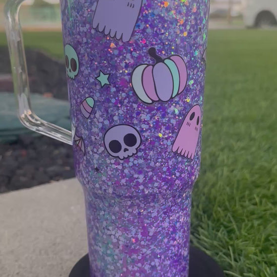 Purple ghost & pumpkins